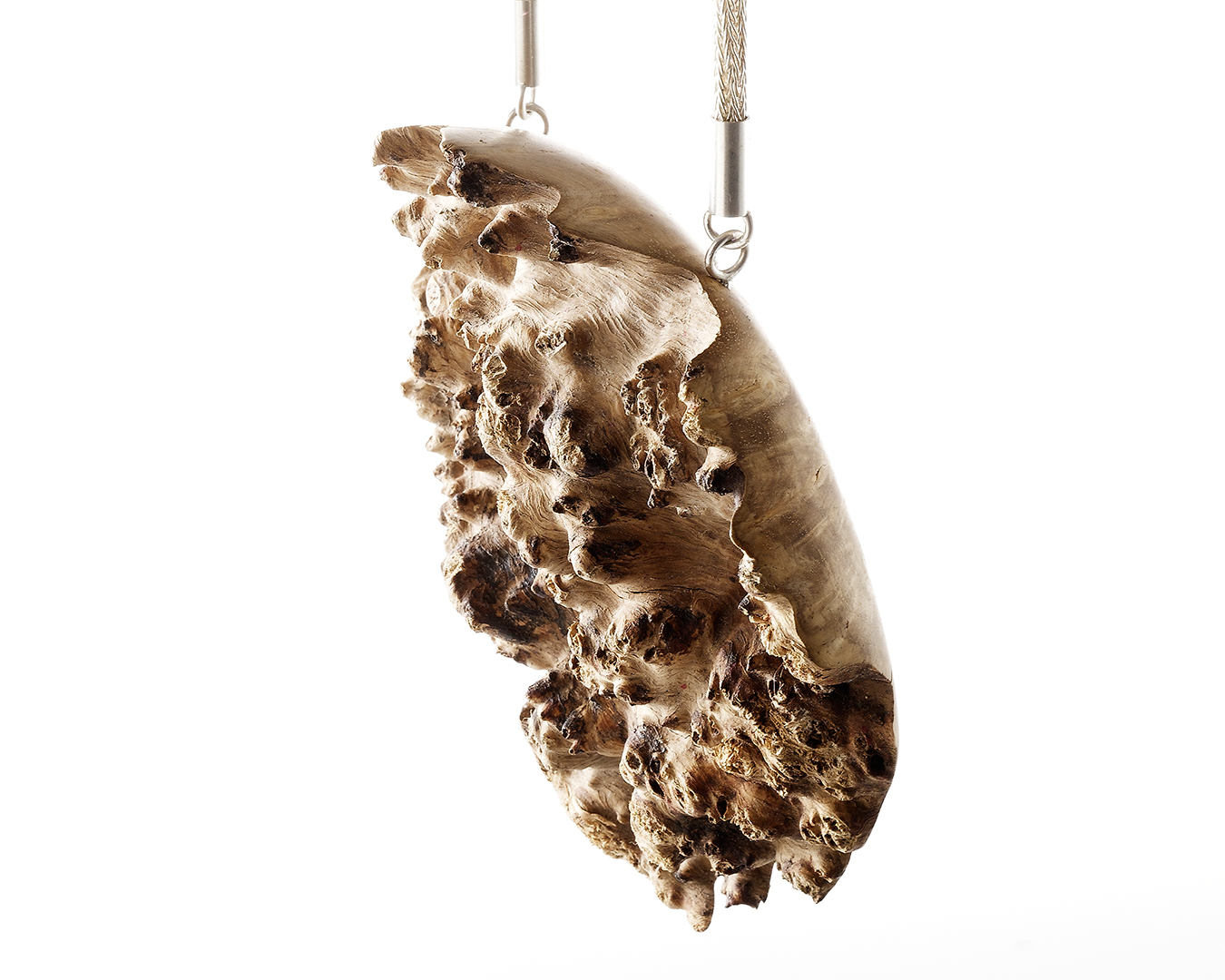 Anhänger "Meditation1" 2009, Amboina-Maser, Silber